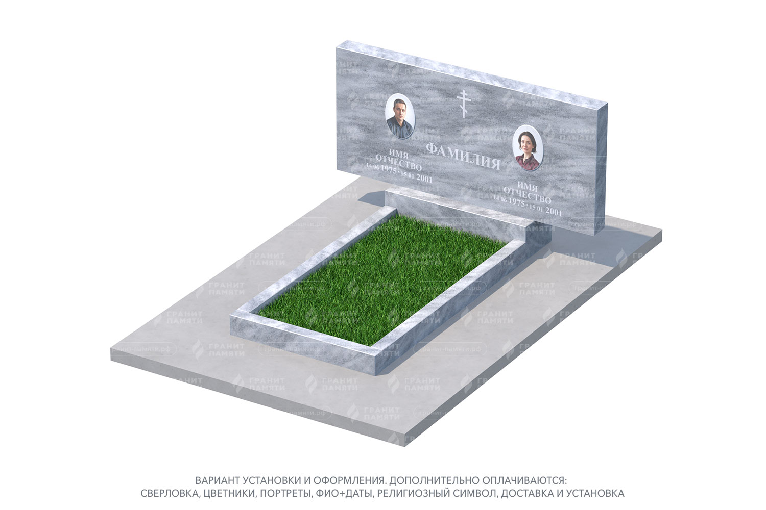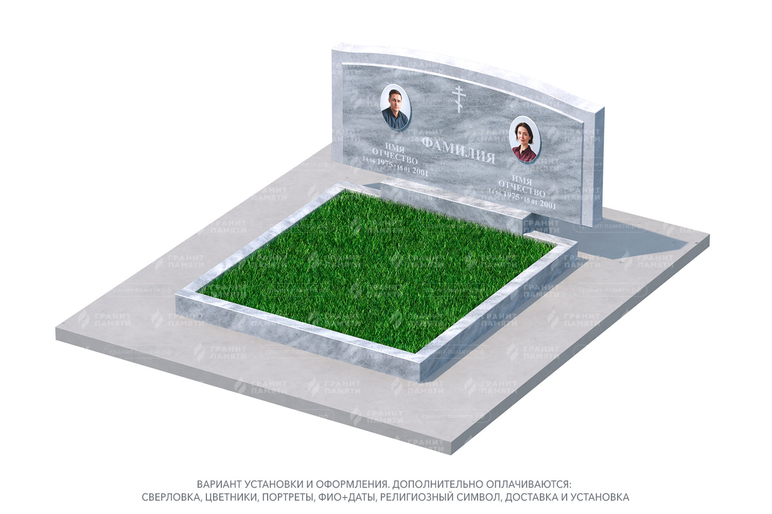 Мы можем добавить портреты на фотокерамике, гравировку с именами, датами и эпитафиями, а также декоративные элементы.